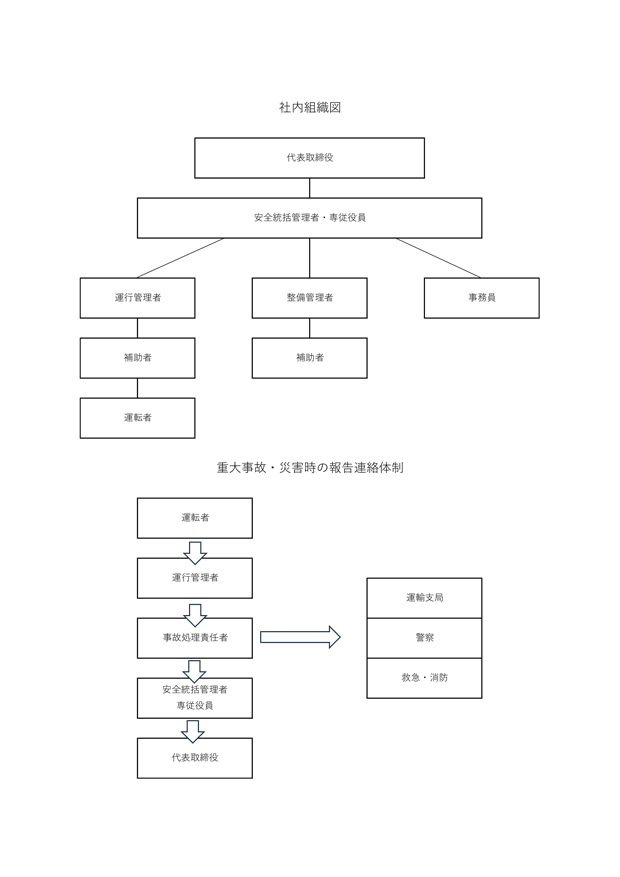 2 輸送の安全に関する組織体制及び指揮命令系統については、安全統括管理者が病気等 を理由に本社に不在である場合や重大な事故、災害等に対応する場合も含め、別に定 める組織図による。